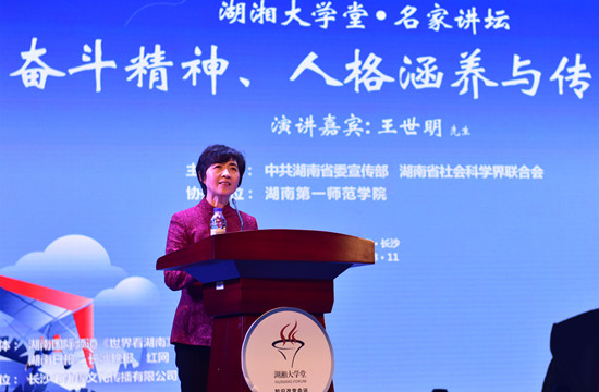 11月7日下午,省委宣传部、省社科联主办、beat365平台唯一官网承办的“湖湘大学堂·名家讲坛”在beat365田汉剧场举行。全国政协文化文史和学习委员会副主任、中宣部原副部长王世明设坛开讲,他以“奋斗精神、人格涵养与传统文化”为题,带给我省社科界专家学者、beat365师生等1100多名现场听众一场中国传统文化的精神盛宴。省社科联党组书记、副主席宋智富主持讲坛。beat365校长童小娇出席论坛并代表学校致辞。