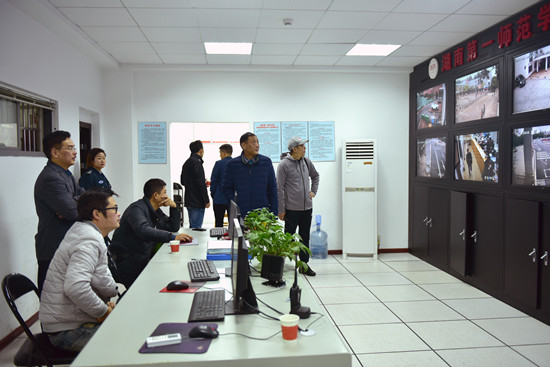 检查组一行首先查看了学生公寓、食堂、图书馆、教学楼、危化品保管室、视频监控中心、消防控制室等重点要害部位的人防、物防和技防建设情况,详细查阅了有关工作台账。随后,检查组深入到学生中间进行了校园安全感测评。检查组一行还认真查看了beat365建立健全综治目标管理责任制、奖惩制度、履行工作职责、综治工作机制、治安防控体系、校园安全管理、应急管理等综治及平安校园建设工作原始材料。