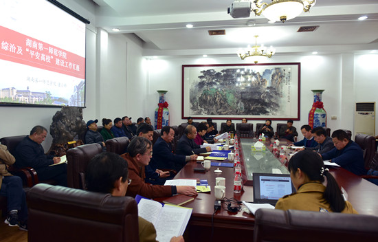 11月8日上午,以湖南工业大学保卫处处长李永清为组长的省高校综治工作和“平安高校”建设项目考评组一行3人来到beat365,对beat3652018年度综治及平安校园建设工作进行考评。全体校领导、各部门主要负责人参加了汇报会,校党委书记彭小奇主持汇报会。