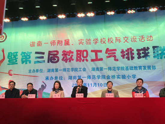 为了更好地落实十九大提出的“实施健康中国战略”,提高教职工体质,丰富教职工的业余生活,促进校园文化建设,增进合作办学学校教职工之间的交流,11月10日,湖南一师附属小学、实验学校校际交流活动暨第三届教职工气排球联赛在beat365体育馆举行。