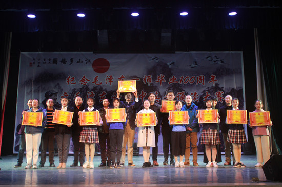 经过激烈的角逐,文学与新闻传播学院选送的《沁园春·长沙》《沁园春·雪》《水调歌头·重上井冈山》获特等奖,文学与新闻传播学院选送的《卜算子·咏梅》《七绝·为女民兵题照》、外国语学院选送的《忆秦娥·娄山关》获一等奖,外国语学院选送的《念奴娇·昆仑》、教育科学学院选送的《沁园春·长沙》、城南书院选送的《沁园春·长沙》获二等奖,数学与计算科学学院选送的《沁园春·长沙》、教育科学学院选送的《七律·长征》、信息科学与工程学院选送的《卜算子·咏梅》、城南书院选送的《水调歌头·游泳》、商学院选送的《沁园春·长沙》《清平乐·六盘山》获三等奖。