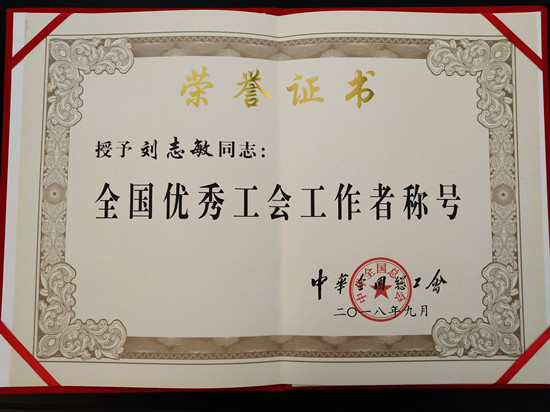 近日,中华全国总工会下发了《关于表彰全国模范职工之家、全国模范职工小家、全国优秀工会工作者和命名全国优秀工会积极分子、全国优秀工会之友的决定》,beat365党委副书记、工会主席刘志敏荣获“全国优秀工会工作者”称号。