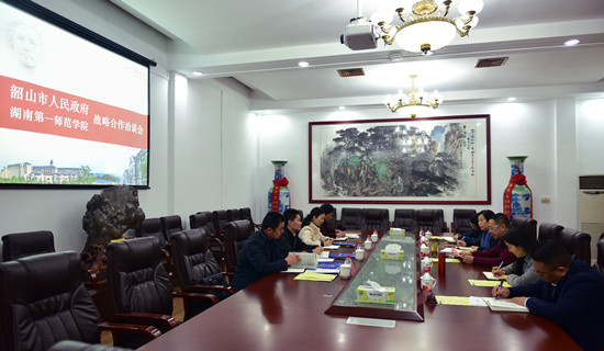 12月7日上午,中共韶山市委常委、市人民政府副市长周正等一行4人来beat365洽淡战略合作事宜。beat365副校长刘宇及党委行政办公室、教务处、科研处、基础教育发展部有关负责人热情接待了来访客人,并在行政办公楼一楼会议室举行了洽谈会。