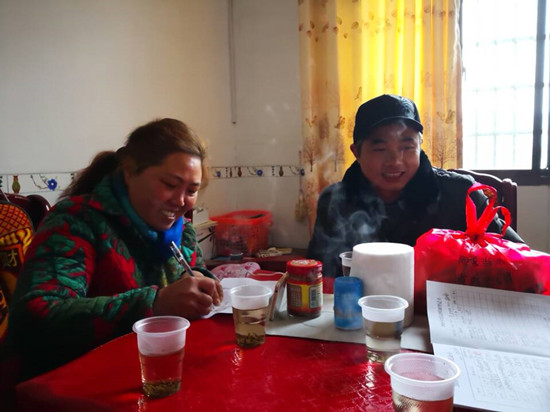 人事处、国际合作与交流处党支部和马克思主义学院党总支负责人一行深入贫困户李新连、张义恒家进行走访调研,并与其家人进行了座谈。交谈中了解到帮扶对象张义恒家在传统种植水稻的同时,用帮扶资金增加了鸡、鸭、羊、鱼等养殖及果树的种植,鸡、鸭及三只新品种小山羊年前可以出栏售卖,壮年劳动力张义恒儿子在农闲时,去县、乡、村等企业打零工,增加了家庭收入。李新连在身体重度残疾、身患多种疾病的情况下,仍然做一些力所能及的工作补贴家用。2018年村级集体合作社也已将两位扶贫对象纳入,到年底村集体合作社已经确定两个家庭人均每人可以保底分红160元,经济收入明显增加,脱贫指日可待。扶贫人员给李新连、张义恒两家送去了冬季产业帮扶资金以及米、鱼干等生活物资。两家贫困户表示,对党和政府、一师领导老师的关心帮扶深感温暖,对生活充满信心。
