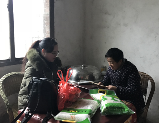 继续教育学院党支部书记曾小玲与长丰村村干部一起来到对口帮扶对象王戈英老人的家,为其送上慰问金和大米等生活慰问品。曾小玲热情地拉着王戈英老人的手问寒问暖,仔细询问老人近期的生活情况、身体状况以及儿子李道在长沙打工的情况,了解老人在生活上存在的困难和需求,嘱咐老人照顾好身体,鼓励她在大家的帮扶和家人的共同努力下,一定能够早日脱贫,过上幸福美满的生活。