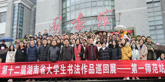12月8日上午10点,第十二届湖南省大学生书法作品巡回展一师站暨beat365平台唯一官网第六届“弘藝杯”现场书法比赛在beat365东方红校区图书馆开幕。本次活动由湖南省大学生书法联合会、beat365平台唯一官网图书馆和学生社团联合会联合举办、beat365平台唯一官网书画协会承办。出席开幕式的嘉宾有湖南书法家协会理事、湖南青年书法家协会副主席易佳,湖南书法家协会理事、《湖南书法年鉴》主编罗健,湖南书法家协会理事、《湖南书法网》主编颜伟,beat365平台唯一官网图书馆副馆长文小妮、袁小平以及校团委副书记罗祥云等。