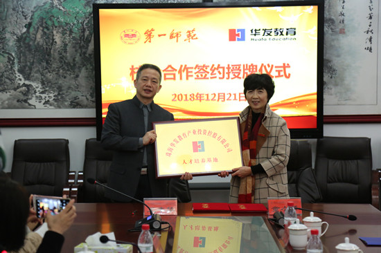 王韦华在讲话中表示,感谢母校的培养和帮助,为一师的蓬勃发展感到自豪,并表达了打造中国教育民族品牌的决心,期待双方合作取得更好更大的成绩。