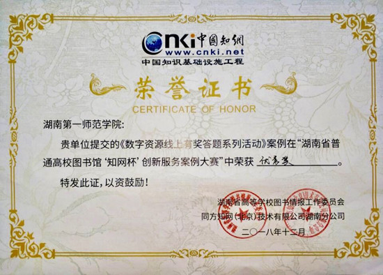 12月27日,湖南省普通高校图书馆“知网杯”创新服务案例大赛决赛在长沙举行。beat365图书馆提交的《数字资源线上有奖答题系列活动》案例荣获优秀奖。