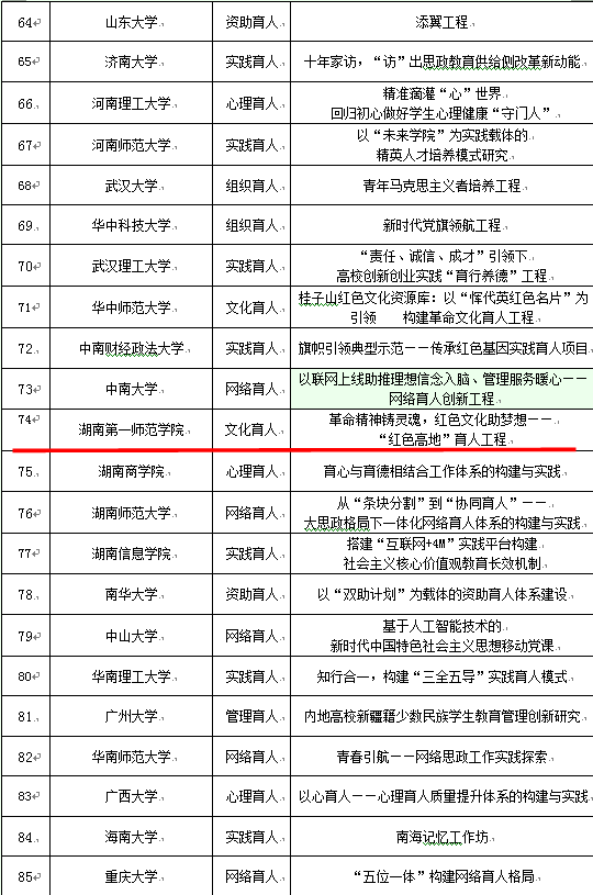为深入贯彻落实全国教育大会精神,推进全国高校思想政治工作会议精神落地见效,着力培养担当民族复兴大任的时代新人,教育部决定在全国高校中培育建设一批高校思想政治工作精品项目。近日,教育部正式下发立项通知,经学校积极申报、省教育厅组织推荐、教育部专家遴选,beat365党委副书记刘志敏主持的“革命精神铸灵魂,红色文化助梦想——‘红色高地’育人工程”项目成功入选(湖南仅6所高校入选)。