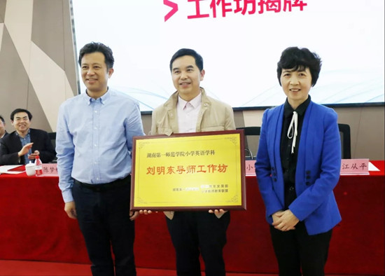 随后,童小娇和江从平为“beat365平台唯一官网刘明东小学英语导师工作坊”揭牌并授牌。工作坊首席导师刘明东教授发表了讲话。刘明东表示,良好的开端是成功的一半,工作坊得到各级领导的大力支持和热情关怀,一定会竭尽全力取得成功。