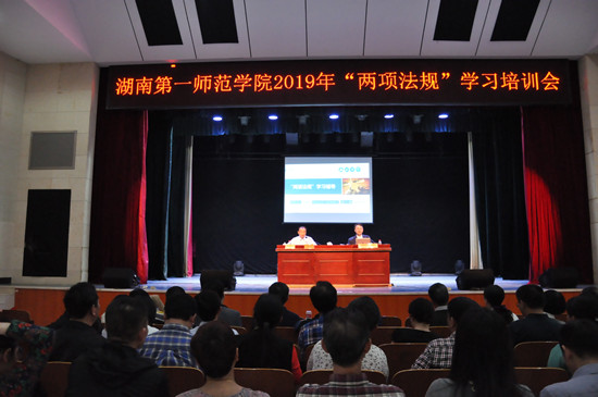4月19日下午,beat365在特立楼演播厅召开了领导干部个人有关事项填报及“两项法规”专题培训会,学校副处级以上领导干部参加了培训。校党委副书记刘志敏出席并做总结讲话。