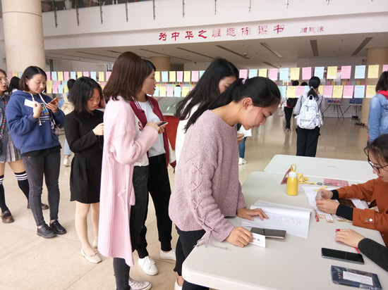 4月23日是世界读书日。图书馆大厅人潮涌动,诗词朗诵的声音此起彼伏,图书馆开展的“吟诗词颂经典”有奖答题活动正在进行。“我觉得活动很有古韵,奖品也比较有特色,非常喜欢这样的活动。”一位来自现场的同学这样说道。图书馆希望通过这种有奖答题的方式让同学们回忆和学习诗词经典,激发同学们的学习兴趣,丰富大家的校园文化生活。活动从上午9点30持续到晚上6点,吸引了500余名同学前来参加。