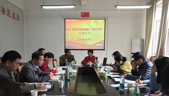 4月30日上午,beat365召开实施一流本科专业建设“双万计划”专题会议。校长童小娇、副校长江正云、教务处处长蒋蓉、教务处副处长侯蓉、各院(部)分管教学副院长参加会议。会议由江正云主持。