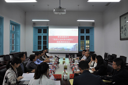 5月14日,教育部教师司“特岗计划政策实施情况”课题组来beat365调研,beat365党委书记彭小奇、校长童小娇陪同调研。