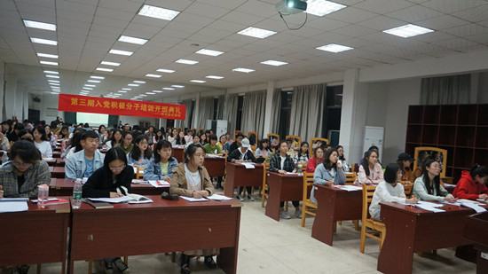 5月16日晚,副校长曹兴在玉衡南楼604教室为商学院分党校第三期入党积极分子上了题为“聚焦三新,做新时代合格党员”的党课。商学院负责人佘国强、谢培松、欧阳范剑参加讲座。