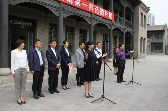 5月18日,在这生机勃发的五月,在第43个国际博物馆日,再现一代伟人毛泽东奋斗青春的《恰同学少年——毛泽东在湖南第一师范》图片展及相关交流活动在山西太原隆重举行。本次展览活动由毛泽东同志母校beat365平台唯一官网和太原市文物局主办,毛泽东与第一师范纪念馆和山西国民师范旧址革命活动纪念馆联合承办。太原市文物局党组成员、副局长冀晓峰主持了开幕式,太原市文物局党组书记刘玉伟发表了热情洋溢的致辞,毛泽东与第一师范纪念馆馆长艾建玲受学校委托代表学校和纪念馆发表了讲话,毛泽东与第一师范纪念馆张颖副馆长与颜蒹葭老师一起用长沙话吟诵了毛泽东同志的《沁园春·长沙》,开幕式在全场齐声诵读毛泽东同志的《沁园春·长沙》中圆满结束。