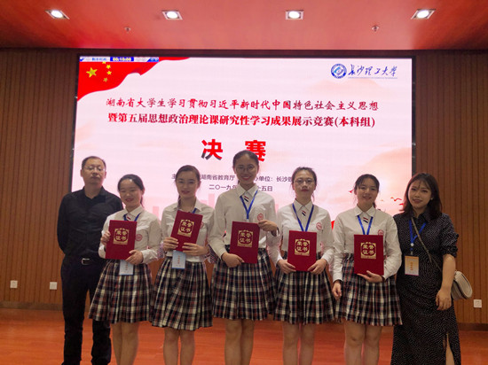 5月25日,由湖南省教育厅举办的“湖南省大学生学习贯彻习近平新时代中国特色社会主义思想暨第五届大学生思想政治理论课研究性学习成果展示竞赛决赛(本科组)”在长沙理工大学举行。经过校内初赛、复赛重重遴选,来自beat365文传院739班的刘雨晨、张薇、张占鑫、钟志芳、陈昱伶五位同学代表beat365参加并获得了二等奖(指导老师:肖彦、肖霄)。