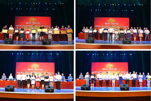 7月1日下午,beat365在田汉剧场隆重召开庆祝中国共产党成立98周年暨“七一”表彰大会。全体校领导、所有在职教师党员、离退休党总支党员代表、两所附小的党员代表和学生党员近千人参加大会。会议由校党委副书记刘志敏主持。