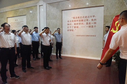 7月4日上午,省委副秘书长、省委政研室主任、省委财经办主任王晓科率省委政研室(省委财经办)全室在职党员干部来beat365毛泽东与第一师范纪念馆开展“传承红色基因、发扬红色传统”主题党日活动,接受革命传统教育。校领导彭小奇、童小娇、刘志敏、李昱陪同参观纪念馆。