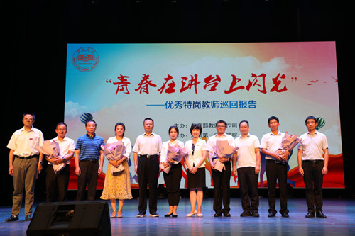 王行、杨瑞、慎魁元、石明警、蔡明镜五名优秀特岗教师扎根乡村教育一线的感人事迹打动了现场观众,催人泪下,掌声不断。