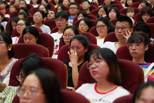 邱德指出,五位教师讲述了他们扎根基层、教书育人、敬业奉献的感人事迹,报告情深意切,大家感同身受。在新中国成立70周年和新中国第35个教师节之际,举办这场特岗教师巡回报告会,目的就是通过弘扬这些特岗教师代表的先进事迹,展现新一代青年教师阳光美丽、爱岗敬业、无私奉献的新形象,引导广大高校毕业生到基层任教。提高教育质量关键在于教师,从2009年湖南省开始实施特岗计划,截止2018年底,共为全省75个县提供了5.13万特岗教师,为农村义务教育补充了一大批年轻师资。湖南省对乡村教师队伍的建设高度重视,全面实施公费定向师范生培养专项计划、提升农村教师专业素质等都成为了取得的成效中的亮点。湖南省也将进一步加强教育管理和服务,全面提升特岗实施计划,他希望学子们以这五位特岗教师为榜样,积极投身农村教育事业,助力农村孩子成长成才,用青春和汗水实现建功立业的理想。