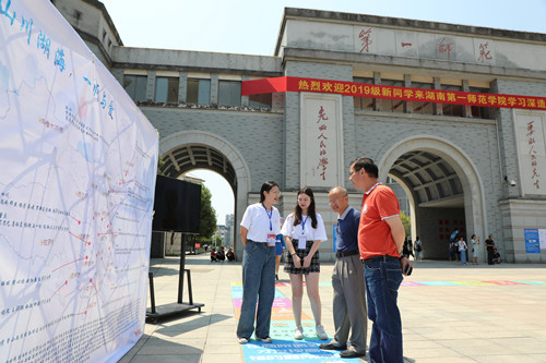 学校党委书记彭小奇、校长童小娇等校领导深入长沙火车站、汽车西站和汽车南站、各院部迎新点,以及校内学生宿舍、生活区域、食堂、缴费处、军训服装和生活用品发放点等地方,实地查看了迎新工作开展情况。“感谢你们选择了毛泽东主席的母校湖南第一师范”、“请你们放心,我们一定将你们的孩子培养教育好”......,学校领导每到一处都与新生及家长亲切交谈,并针对新生入校后在学习、生活中的各种问题现场一一解答。