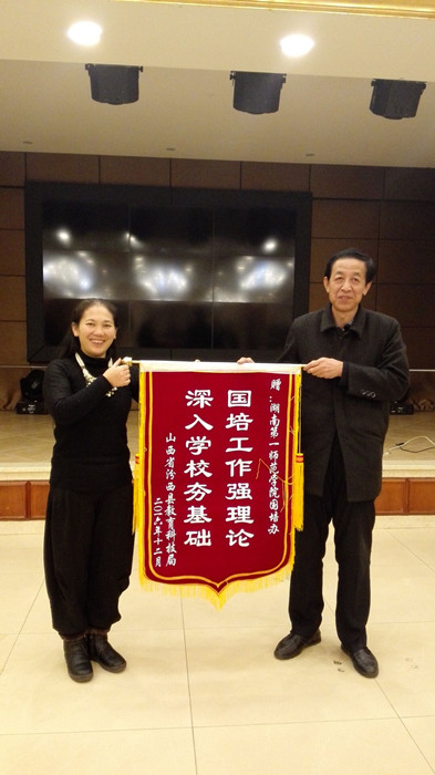 本次跟踪回访活动得到了山西省汾西、石楼等县市和湖南省邵阳、怀化等县市教育局及乡镇政府的大力支持。山西省汾西县体教局给beat365赠送了“国培工作强理论,深入学校夯基础”的锦旗。曾小玲山西一行走访了山西省汾西县勍香北街小学、汾西县下团柏小学等,她还给回访的校长和山西省汾西县的老师做了“做智慧的教育”专题讲座,并深入学校,查看师生食堂,了解学校软硬件设施,与教师、校长座谈,并结合当地实际,针对学校管理和教学中存在的问题和困惑,进行学校管理的现场诊断,提出解决问题的思路。黄朝霞湖南一行走访了湖南省武冈市头堂乡新东九年制学校、洞口县岩山镇中心小学和绥宁县金屋学校等。通过深入课堂听课评课,深度剖析课堂,指导教学,促进乡村教师专业成长,同时为受训的乡村校长走出学校管理瓶颈提供了有效指导。