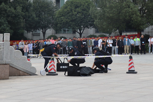 演练活动现场模拟了劫匪持刀砍人、不法分子持棒棍冲进校园和恐怖分子在校内投放炸弹三个场景。场景的演绎增强了beat365师生的安全意识和防恐防爆意识,提高了保卫处、学校突发事件应急小分队、门卫、值班人员在反恐防暴突发事件中的应急能力,令师生们印象深刻。整个反恐防爆演练活动组织有序,为做好新形势下学校反恐防暴工作,确保校园安全稳定,维护师生人身、财产安全,共建安定、团结、和谐校园打下了坚实的基础。