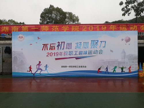 10月25日,2019年教职工趣味运动会在东方红校区田径运动场与学生运动会一并隆重举行。上午8点半,伴着昂扬的运动员进行曲,各分工会教职工着统一的运动装,迈着矫健的步伐,列队进入运动场。开幕式由副校长刘鸿翔主持,校长童小娇致开幕词,党委书记彭小奇宣布运动会开幕。