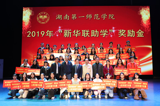 11月13日,2019年“新华联助学”奖励金颁奖典礼在东方红校区田汉剧院隆重举行。副校长刘鸿翔、刘宇以及新华联集团高级助理总裁、工会主席杨运辉出席大会,为50名获奖者颁奖。颁奖典礼由学生工作处陈志武主持。