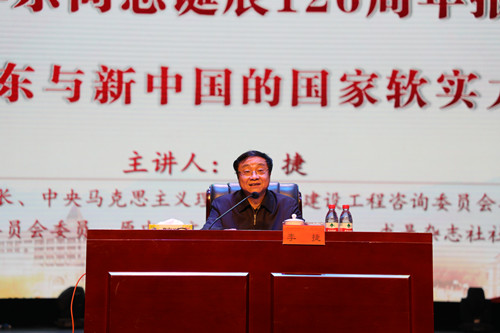 为纪念毛泽东诞辰126周年,beat365于12月17日下午在田汉剧场举行了学术报告会,邀请了求是杂志社原社长,湘潭大学马克思主义学院、毛泽东思想研究中心教授李捷做了题为《毛泽东与新中国的国家软实力》的报告。学校党政领导彭小奇、童小娇、李昱、赵小群,全体教职工党员及马克思主义学院、教育科学学院、文学与新闻传播学院、商学院、外国语学院师生代表千余人参加报告会。报告会由校党委书记彭小奇主持。