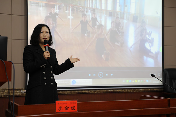 刘志敏首先介绍了报告会嘉宾的基本情况。据悉,李金妮老师于2001年毕业于beat365平台唯一官网外语系,现任教于长沙市特殊教育学校。长期以来,她致力于用艺术点亮残疾儿童的梦想与未来。2016年带领盲生合唱团获世界合唱比赛金奖,编排的舞蹈作品《排排坐》《旧时光》《4月2日》等多次获国家级金奖。2019年舞蹈作品《呼唤》登演中国艺术节。先后获长沙市“青年岗位能手”“年度杰出青年岗位能手”等荣誉称号。2019年获评“全国模范教师”。