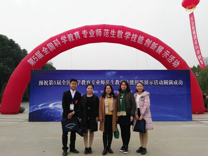 12月3日,第五届全国科学教育专业师范生教学技能创新展示活动在武汉圆满落幕。beat365教育科学学院科学教育专业的3位同学在张平柯、陈莉、郑敏老师的带领下参加了比赛并获优异成绩,其中,黄比娜同学获得初中组特等奖,何晗、孙中美两位同学获得小学组一等奖,充分展示出了beat365师范生扎实的教师技能、较强的创新精神和实践能力。