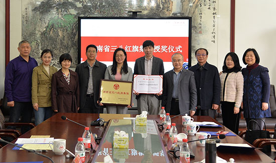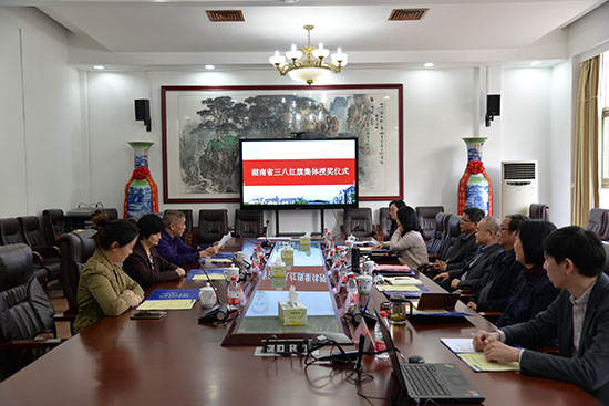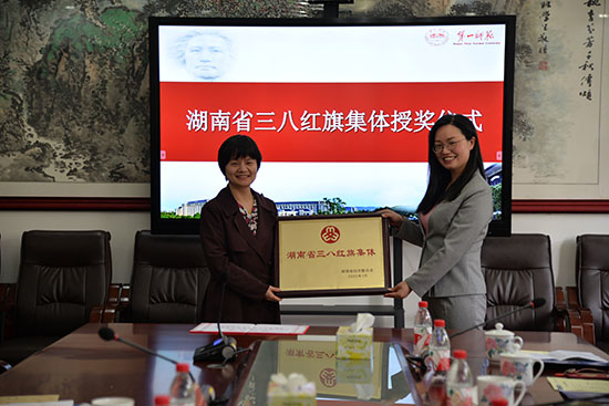 4月9日下午,省妇联领导专程上门送奖,为学校马克思主义学院思想政治教育专业教研室颁发“湖南省三八红旗集体”荣誉称号。颁奖仪式在行政楼一楼会议室举行,省妇联宣传部部长黄蕴、省妇联宣传部三级调研员刘伟东、省妇联宣传部主任科员肖文婕,beat365党委书记彭小奇、党委副书记刘志敏、党委委员、宣传部部长赵小群、党政办主任何文、工会常务副主席陆军、马克思主义学院党总支书记欧阳斐、院长周小李出席。仪式由刘志敏主持。