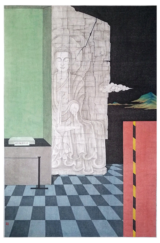 丁一《呼吸山水》纸本设色100×150cm指导老师:彭杨