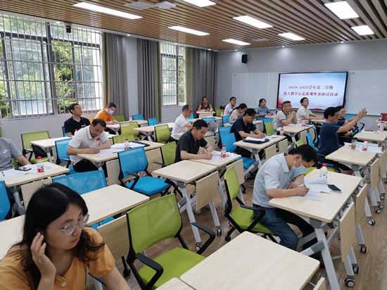 为充分发挥疫情防控期间beat365在线教学优秀教师的示范、辐射和指导作用,促进教师间交流学习,提升广大教师线上教学能力和水平,6月2日下午,由教学评估与教师教学发展中心组织开展的2019-2020学年第二学期线上教学示范课集中观摩及研讨活动在特立楼智慧教室举行。副校长江正云、教学评估与教师教学发展中心、教务处、现代教育技术与网络中心以及各院部负责人参加了观摩、研讨活动。