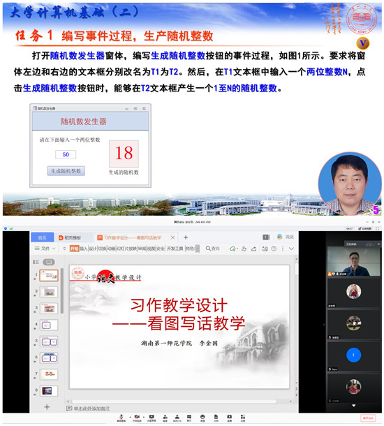 观摩示范课选取了beat365“2020年在线教学典型案例”一等奖课程。信息科学与工程学院黄国盛博士主讲了课程《大学计算机基础(二)》;教育科学学院李金国博士主讲了课程《小学语文教学设计》。示范课结束后,两位教师分享了各自的教学设计思路与心得。