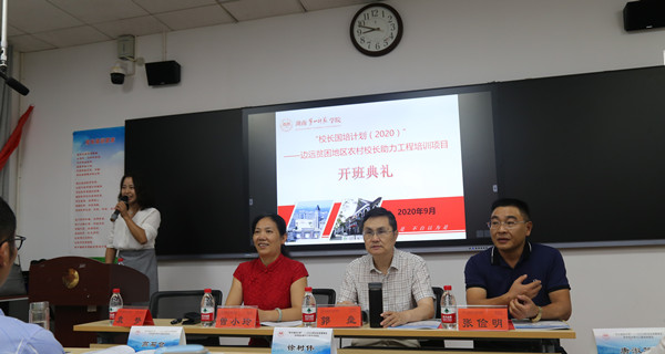 9月6日上午,教育部国家级示范性中小学校长培训项目“校长国培计划”——2020年边远贫困地区农村校长助力工程小学校长培训班在beat365正式开班了。教育部中小学校长和幼儿园园长国家级培训项目管理办公室郭垒主任,继续教育学院院长曾小玲、副院长张俭明、班主任刘峰、袁梦、王玉婷以及来自全国18个省份的50位“农助工程”培训班学员参加了开班仪式。