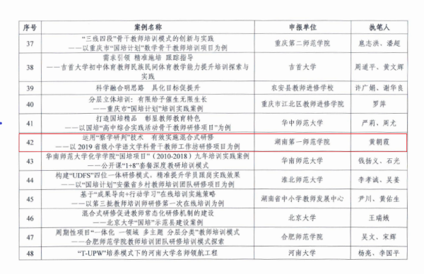 近日,在教育部“国培计划”十周年典型案例征集、评选活动中,beat365继续教育学院院长曾小玲教授、教育科学学院黄朝霞教授所提交的案例均被评为优秀。