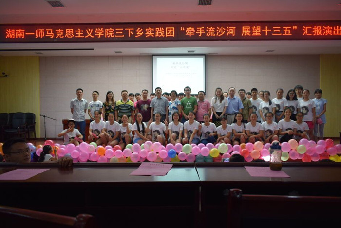 马克思主义学院2016年暑期“三下乡”赴宁乡县流沙河镇国情、社情、党情、民情“四情”观察团由5名专业老师和23名思想政治教育专业学生组成。活动期间, “三下乡”实践团时刻牢记校领导在beat3652016年暑期 “三下乡”社会实践活动启动仪式上的嘱托,秉承“作贡献、受教育、长才干”的活动宗旨,充分发挥专业特色,在当地开展了丰富多彩的社会实践活动: