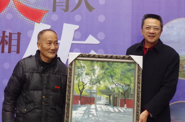 校党委委员、副校长刘宇代表学校接收汪涵喣赠画