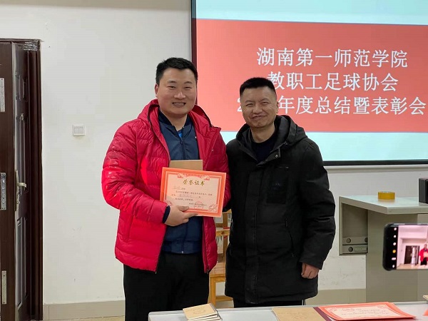 据悉,一师教职工足协成立于2017年,已成为深受教职工喜爱的协会和校工会倡导教职工体育运动、提高身体素质的良好载体。2020年该协会共组织(参与)各种比赛52场,对外参赛获得三个季军,李成权老师获得“开福区足协贺岁杯赛”最佳射手。