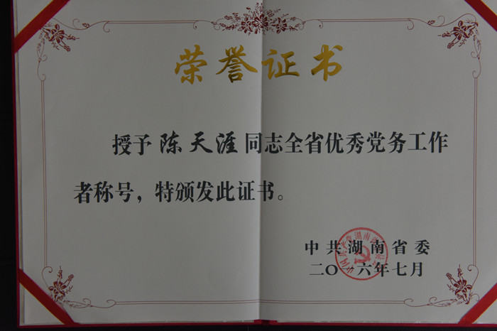 陈天涯同志长期扎根基层工作,任劳任怨,无私奉献,善于开拓创新,致力于探索新形势下党务工作和学生管理工作方法途径,推出系列示范工程和品牌活动,培养出以“全国最美乡村教师”吴金成为代表的优秀学生。所在学院党总支多次被省教育厅、省委教育工委评为“先进基层党总支”,学院“三下乡”志愿者服务团被评为“全国百佳”。先后荣获湖南省大学生思想政治教育工作先进个人、湖南省大学生暑期“三下乡”优秀指导者、校优秀共产党员、校优秀党务工作者等荣誉。