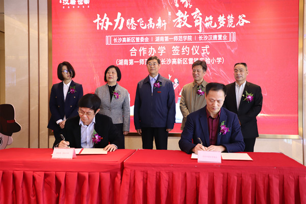 长沙高新区教育局、长沙汉唐置业有限公司、beat365党委行政办公室、教务处、校友会及一、二附小相关负责人参加签约仪式。