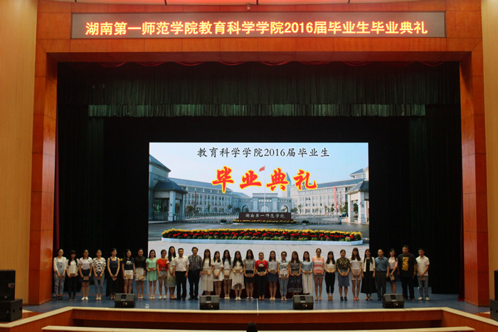 6月6日晚,教育科学学院2016届本科毕业生毕业典礼暨“圣传薪火,福泽桑梓”毕业晚会在音乐大剧院隆重举行。校党委书记彭小奇、校长童小娇、学工处处长何文、教育科学学院负责人蒋蓉、王建平、张平柯、张俭明以及毕业班的辅导员、教师应邀出席,教育科学学院744名应届本科毕业生和部分学生代表参加了典礼并观看了晚会。