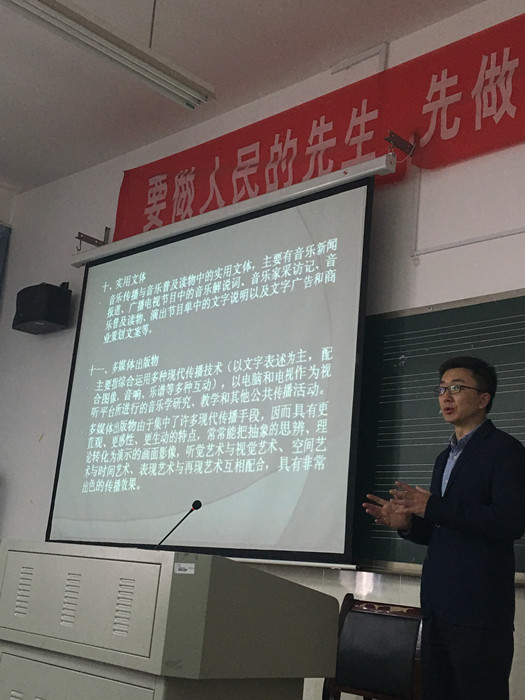 4月27日上午,《人民音乐》编辑部主任张萌博士应邀来beat365做了一场题为“动机与展开——音乐论文写作中的几个核心问题”的讲座。讲座由曹兴副校长主持。科研处负责人、音乐舞蹈学院部分师生聆听了本次讲座。