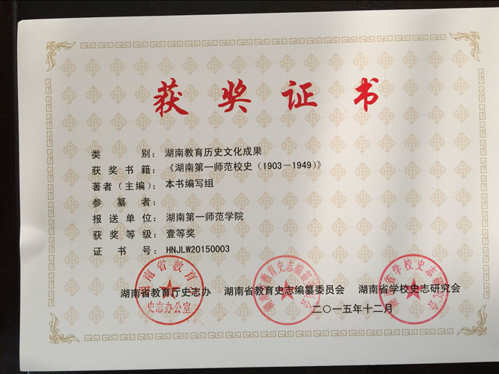 12月26日,湖南省学校史志研究会第二次全省会员大会在长沙召开,来自全省教育系统的300余名代表参加大会。大会通报表彰了湖南省首届优秀教育史志类书籍和2015年度优秀论文。beat365编写的《湖南第一师范校史(1903-1949)》和beat365原副校长孙海林主编的《湖南第一师范校史(1949-2003)》获全省首届优秀教育史志类书籍一等奖,被推荐收入湖南省地方志档案馆、湖南省教育史志陈列室和湖南省图书馆地方文献典藏保管部收藏,并被列入省级优秀图书永久收藏书目。会上,beat365退休教师、省文史馆员王沛清教授以“一师是个好学校”为题作了专题学术报告。