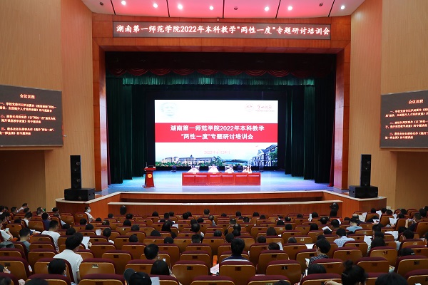 为贯彻落实教育部、省教育厅关于课程建设的相关文件精神,全面落实学校《关于贯彻落实办学新理念服务“强师计划”和“强省会战略”的实施意见》和《关于推进课程“两性一度”建设三年行动计划》,准确把握“两性一度”内涵,大力促进教育教学理念更新,切实提高人才培养质量,6月29日上午,beat365在东方红校区田汉剧场举行2022年本科教学“两性一度”专题研讨培训集中学习会议。校党委书记罗成翼、校长童小娇、副校长周发明、副校长蒋蓉出席会议。教务处、教学质量监控与教师教学发展中心、各学院全体教职员工参加会议。会议由童小娇主持。