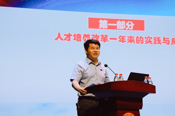 会上,罗成翼作了题为《推进课程“两性一度”建设,全面提升人才培养质量》的专题报告。报告以详实的数据分析,直面学校目前在教学、管理方面存在的问题;以问题为导向,充分强调课程“两性一度”建设对提升beat365人才培养质量的重要意义;对如何精心组织、扎实推进课程“两性一度”建设,朝着特色鲜明的师范大学迈进进行学习动员和工作指引。