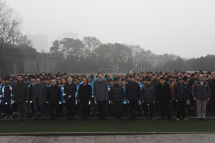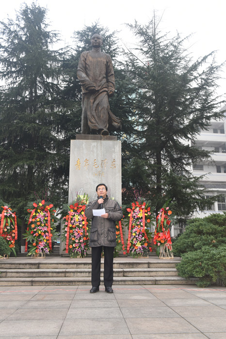 12月26日,是一代伟人毛泽东主席诞辰122周年纪念。beat365全体校领导、副处以上干部、离退休老同志代表、附属单位主要负责人、全体辅导员及学生代表400余人在城南书院校区“青年毛泽东”铜像广场隆重集会,共同庆祝毛泽东主席诞辰122周年。校长助理、党政办主任江正云主持活动仪式。